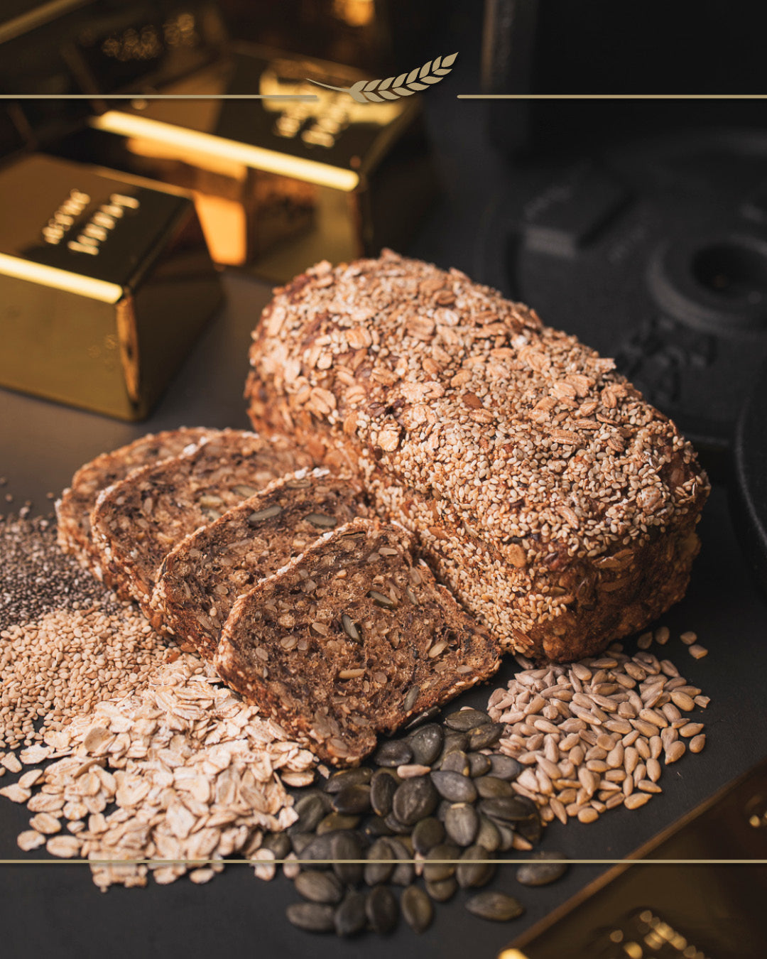 Unser Goldbarren vereint handwerkliche Backkultur mit einer saatenreichen und proteinbetonten Rezeptur.