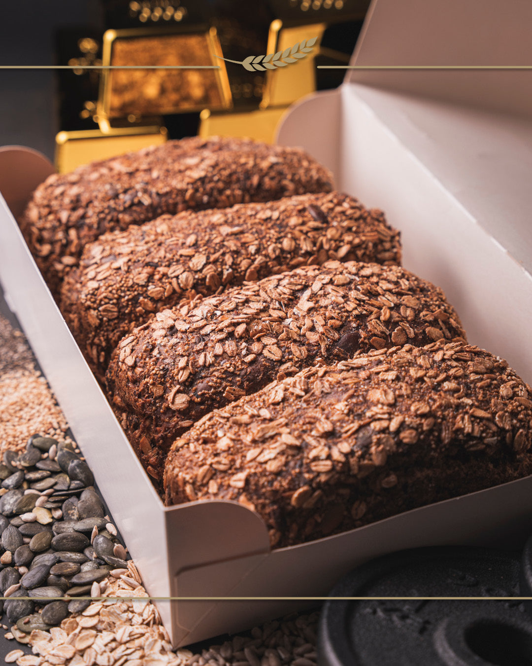 Unser Goldbarren vereint handwerkliche Backkultur mit einer saatenreichen und proteinbetonten Rezeptur.